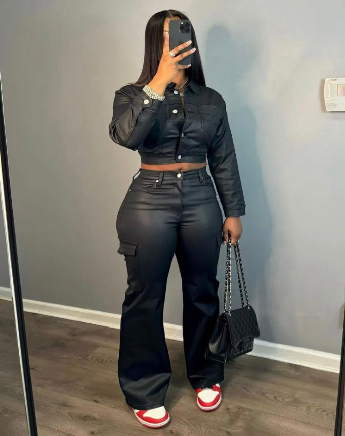 PU LONG-SLEEVED TROUSERS 2PC SET
